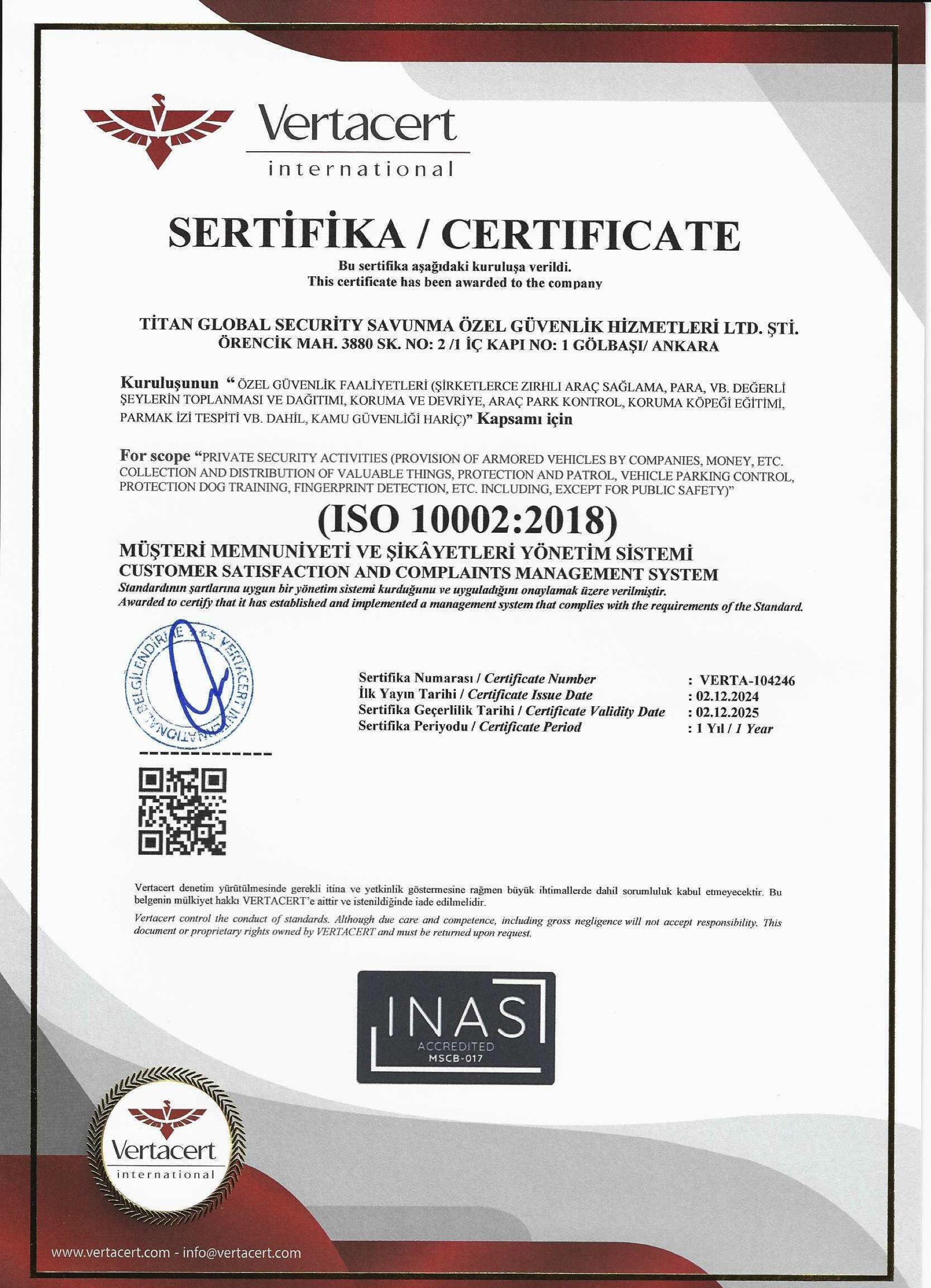 ISO 10002-2018 Müşteri Memnuniyeti ve Şikayetleri Yönetim Sistemi